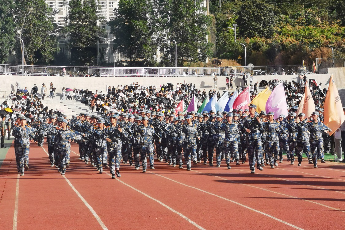 伴随着庄严的国歌与冉冉升起的五星红旗,全体师生起立,奏唱国歌,开幕式正式拉开序幕。紧接着护旗方阵、各学院标兵方阵迈着整齐划一、铿锵有力的步伐一一经过主席台,接受各领导检阅,展示了我校数日来大一学生军训的优秀成果。与往年不同的是,今年来自三亚学院附属幼儿园的小朋友们也手拉着手,挥舞着国旗,组成方阵踏上主席台前的跑道,为我校建校15周年庆祝大会暨2020年体育欢乐节开幕式送来美好祝福。