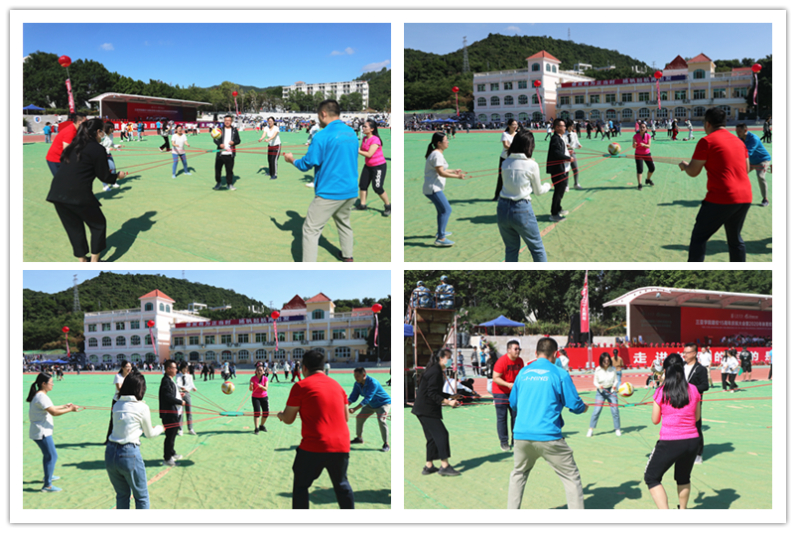 三亚学院2020年体育欢乐节的正式开幕为教职工们提供了展示运动能力的平台,为增强我校教职工团结协作的精神,12月17日上午10时,教工组男女“众人击鼓”决赛在北区田径场中央举行,我院副院长郜宣等教职工积极参与比赛。