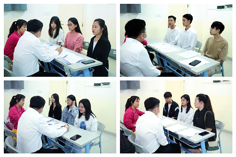 在本场招聘会结束后,陈先生收取学生的简历并进行了现场面试。陈先生的面试以“如何成为一名优秀的‘中免人’”开展,他认为只有将“不怕困难、专业高效、团队合作、勇于创新”这16个字贯穿整个职业生涯,才能成就一名优秀的“中免人”。