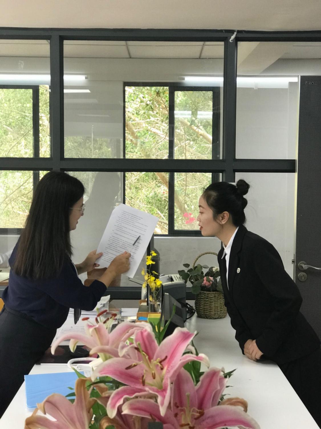 在旅酒学院办公区里,成熟稳重的气质在每一位教师的身上体现得淋漓尽致。走廊上有穿着院服前来办事的学生、办公室里教师们穿着正装在安静的备课、行政综合办公室里教师们微笑着耐心地为学业咨询的同学答疑解惑,一切都显得井然有序。职业化的身影从明亮的玻璃窗中透出来,折射出一道道靓丽而独特的风景线。