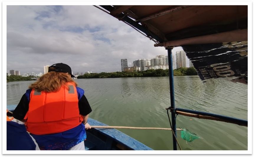 据现场了解,志愿者同学们穿着整齐的志愿服装,手中拿着船上的捞网工具,大家纷纷投入到三亚母亲河的行动中。大家积极地用捞网捞出河面上的纸屑、树叶、木枝,还有的同学也捞起了一些啤酒瓶和矿泉水瓶子。大家热情饱满,干劲十足。虽然在刚开始时,天公不作美,下起了阵雨,但好在很快雨过天晴,丝毫没有影响大家的热情,依旧激情高昂地打捞。雨过天晴后的三亚母亲河上,漂浮着我们两三叶志愿打捞小船,形成了美丽三亚一道亮丽的风景线。