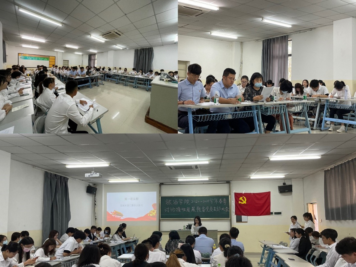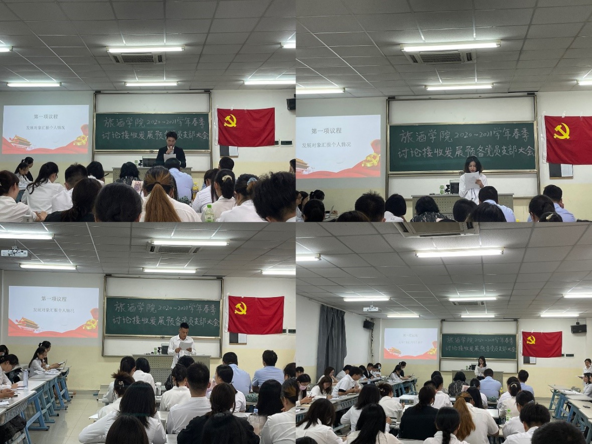 2021年4月16日,旅酒学院学生党支部于三亚学院书知楼2105教室召开了接收预备党员支部大会,讨论何璐等55名发展对象的入党情况。本次会议由组织委员石玲,宣传委员曹添、思想导师王曦茜、刘文琦出席,学生党员、发展对象和积极分子参加。