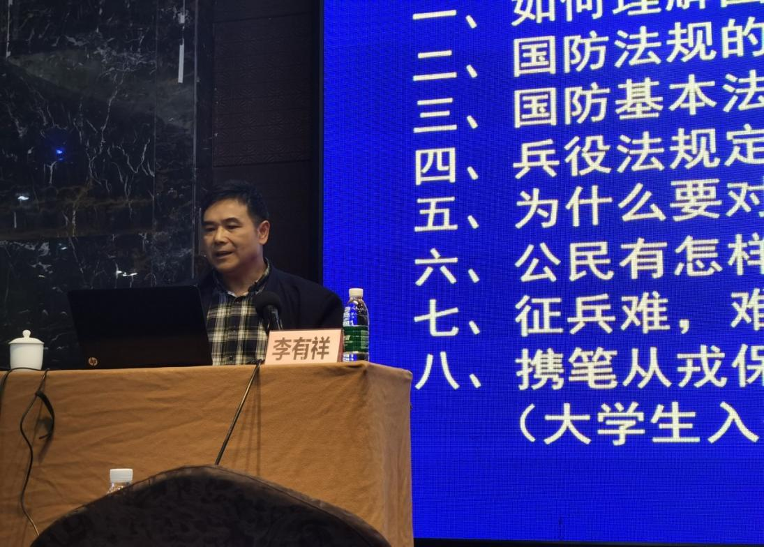 李有祥从军事理论课教学设计与授课艺术以及武装力量两方面进行了深入分析和讲解。他指出,一堂好的国防教育课必须有其独特风格和授课艺术,必须能让学生“一见钟情”,并结合大量实例总结性地提出国防教育课应具备“一心二义,说三道四,五光十色,百炼千锤”等特色。
