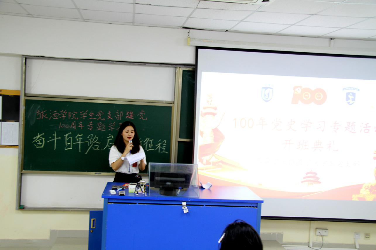 2021年是中国共产党建党100周年,为隆重纪念党的百年华诞,深情回顾党的奋斗历史,4月28日下午,旅酒学院学生党支部学习百年党史,汲取奋进力量专题学习系列活动开班典礼。本次会议石玲老师、曹添老师出席,刘静英同志主持,全体学生党员、预备党员和入党积极分子参加。