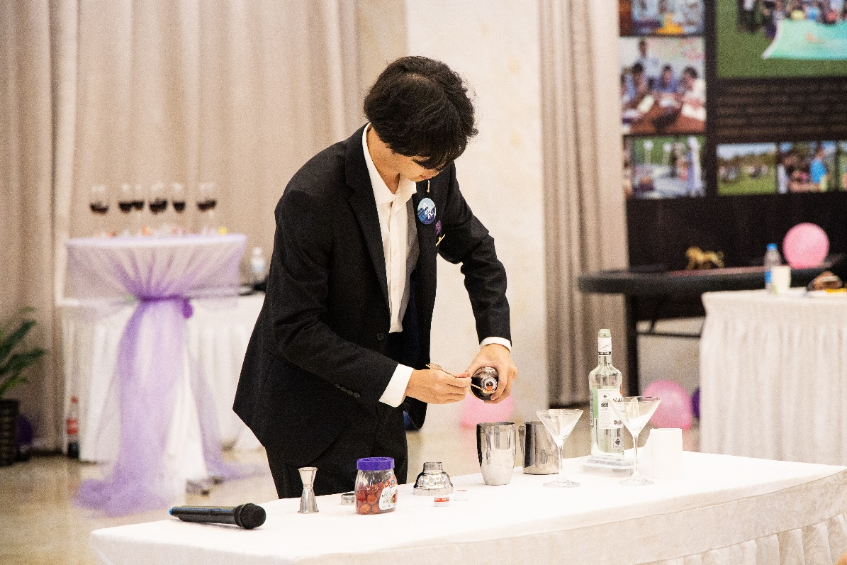 疫情趋于稳定,为使邮轮行业快速复苏,此时更要集思广益,推出更多优秀的邮轮航线策划。秉持着这一初衷,旅酒学院特意举办了此次邮轮嘉年华航线设计竞赛。在主持人进行自我介绍和讲解了此次竞赛的流程后,本次活动正式开始。在“船长”的引领下,首先是邮轮特色部门活动展示,娱乐部为大家表演了优雅美丽的交际舞,其次是激烈的抢凳子游戏,最后俱乐部带来了CPG横琴赌桌游戏。场内气氛由舒缓逐渐热烈,评选老师以及在场的学生观众们热情高涨,不亦乐乎。