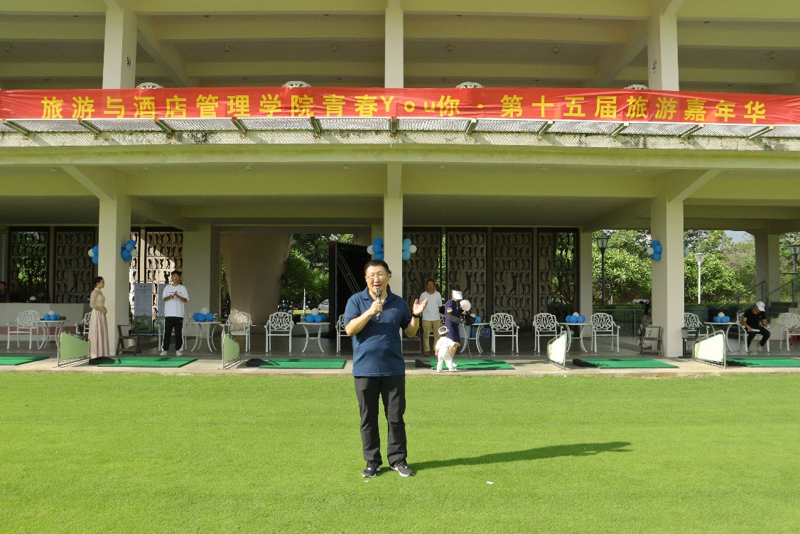 时光的飞速流逝让成熟代替了青涩,也让嫩芽成长为茁壮的新苗。为让“旅酒人”与时俱进,共担时代的使命,为建设美好海南添砖加瓦,近日我院在高尔夫球场举行了青春You你·第十五届旅游嘉年华开幕式。我院院长柴勇,副院长郜宣,党总支副书记吴吟秋,团委副书记吴小柳、李琴,思想导师王曦茜、刘文琦、张语芯、闫冰洁以及高尔夫专业主任吴兰卡等老师同我院部分学生代表出席本次开幕式。