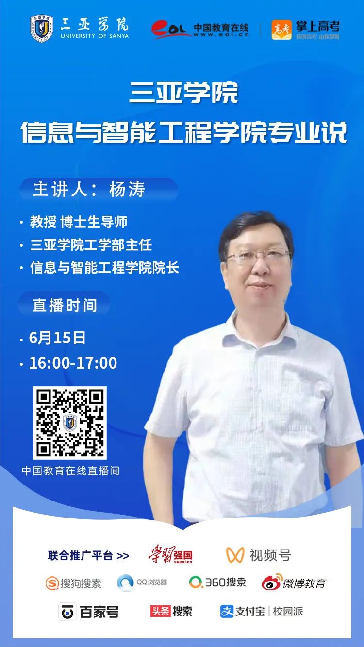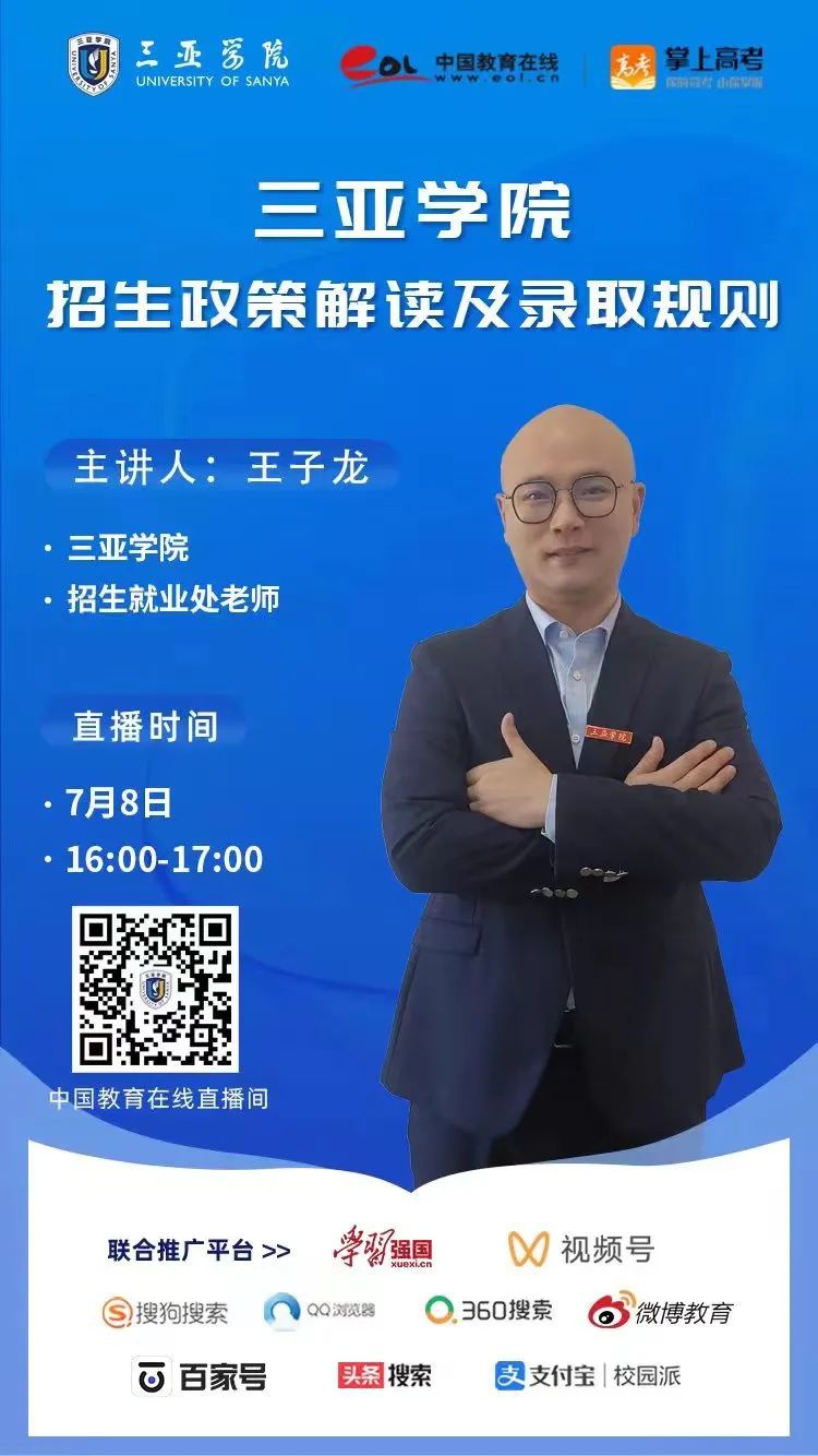 为帮助广大考生精准了解2022年三亚学院招生动态,“学院说专业”系列直播第一弹活动来啦!