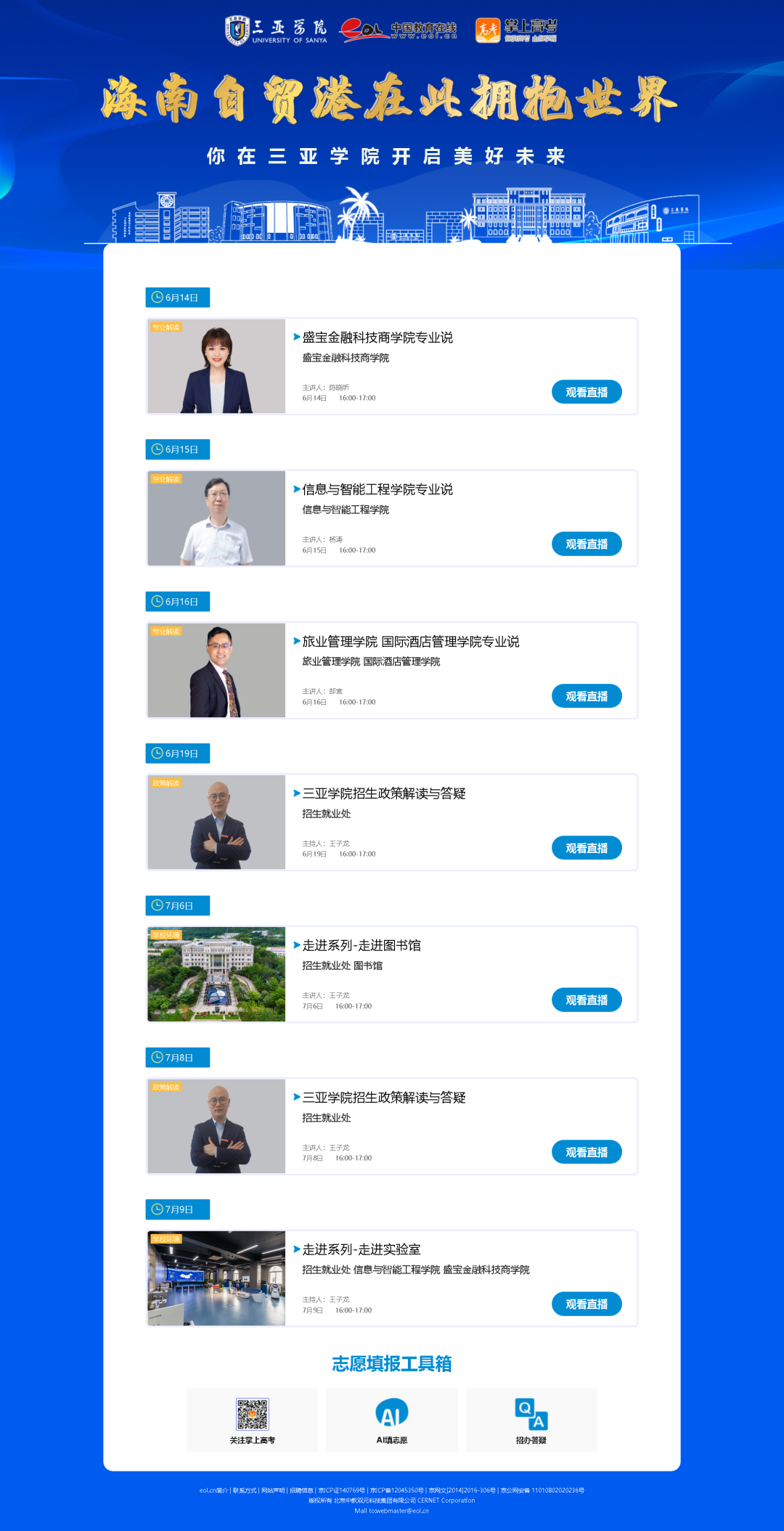 7月6日起“走进”系列,含招生政策解读、志愿填报指导、走进图书馆、走进实验室,以及6月14-16日三场学院的直播回放。