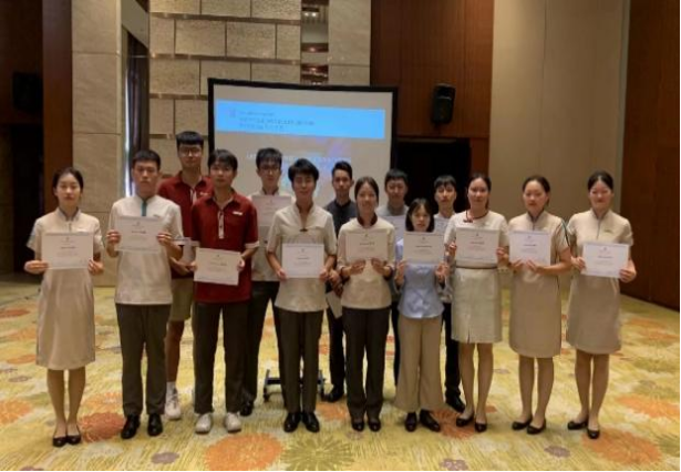 孙昊:在新员工入职培训的期间,就切身感受到酒店对新员工,尤其是对实习生的关爱。我们的入职培训安排在了酒店最豪华的金茂宴会厅,酒店管理层的高管们不仅给我们讲解专业的工作守则和要求,还让我们体验到酒店餐饮茶歇工作的专业和贴心。