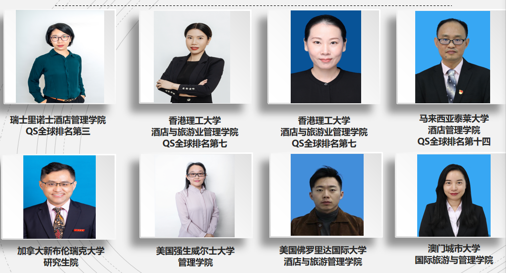 其中,超过一半的老师来源于世界各国知名大学,尤其是在酒店与旅游领域,形成了国际化教学骨干团队,如瑞士里诺士酒店管理学院、香港理工大学酒店与旅游业管理学院、马来西亚泰莱大学酒店管理学院,这些都是在全球QS教育与科研排名前20的学校。因而学院的教学水平获得了有力的保障,学生能同时接受多种文化观念熏陶,对其发展逻辑思维能力、创新能力、沟通能力、趋势预判能力、以及领导力起到了关键作用。