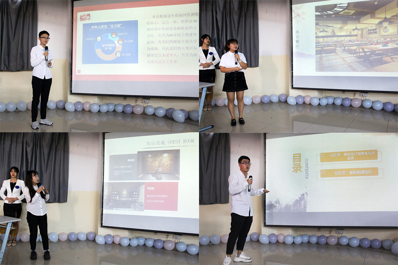 活动中,有的小组设计出了融入戏剧元素,展示中国风样式的邮轮,通过客房+浸入式戏剧文化体验、餐饮+新奢式无国界饮食等独具匠心的设计,巧妙地将中西方文化相融合;有的小组以梦回大唐为主题,将古声古香的客栈文化,交融于现代特色文化,为客人打造别具风格的大唐文化……参赛小组通过航线设计讲解、专业知识竞答与专业技能展示了同学们的才艺、演讲口才以及创新思维。