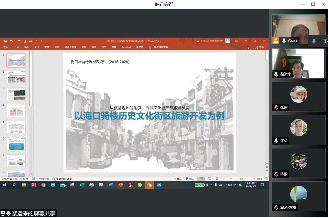 暑假科研不间断,学界业界共碰撞。9月3日晚我院旅拍科研团队针对目前的研究现状,在线举办了“文化遗产与旅游发展”学术沙龙。本次沙龙特别邀请了仲恺农业工程学院的陈朋老师、中交海洋投资控股有限公司的黎运来经理和海南布黎布舍服饰文化有限公司的汪建经理,围绕文化遗产与旅游发展展开讨论,为海南旅游发展建议献策。