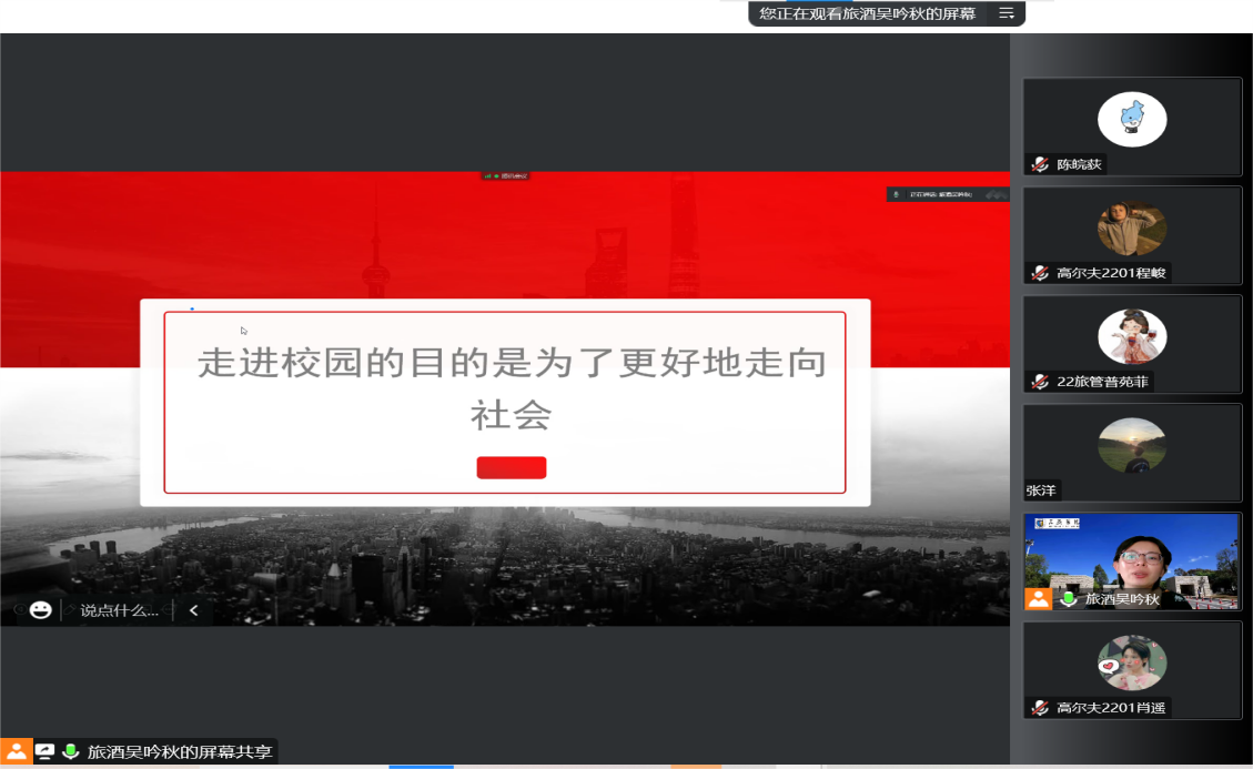 根据疫情防控的要求及学校工作安排,我校2022级新生将于9月19日开始线上教学。为了帮助2022级新生更好地规划大学生活,明确未来目标和发展方向,同时为了进一步为初入大学的学生们答疑解惑,更快地适应大学学习过程中的各类心理问题,让学生们更好地融入大学生活中,我院党总支副书记吴吟秋于9月19日下午15时在腾讯会议为我院2022级新生开展主题为“奋斗是青春最亮丽的底色”的入学教育,我院2022级所有新生积极参与。