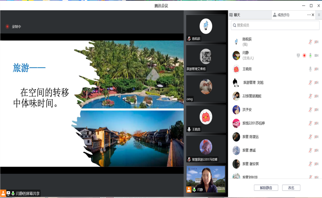 为了让2022级新生们对旅游管理专业有初步的认识,了解旅游管理专业的基本学习内容、学习的方向和方法及学习中可利用的有效资源,使学生们能在学习旅游管理专业的过程中有明确的学习方法和态度,并在进入正式的专业课程前熟悉关于旅游管理的专业内容,我院旅游管理专业主任闫静于9月21日上午9时在腾讯会议为2022级新生介绍专业知识。