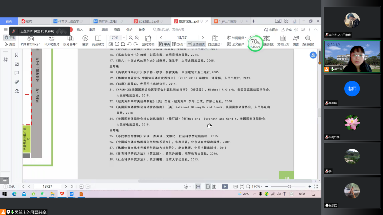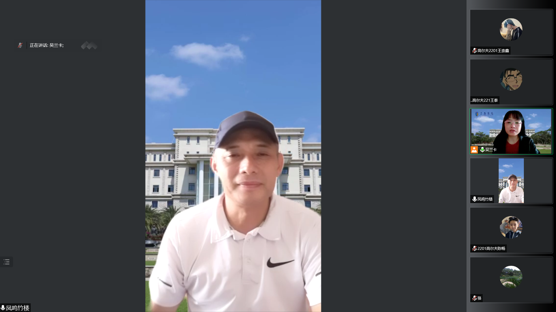 首先吴兰卡老师讲解了高尔夫专业在大学时间里所需要的书籍课本,并介绍本次会议以“走进别人的世界,探寻自己的梦想”为主题,让学生们对本次会议主题进行了明确。