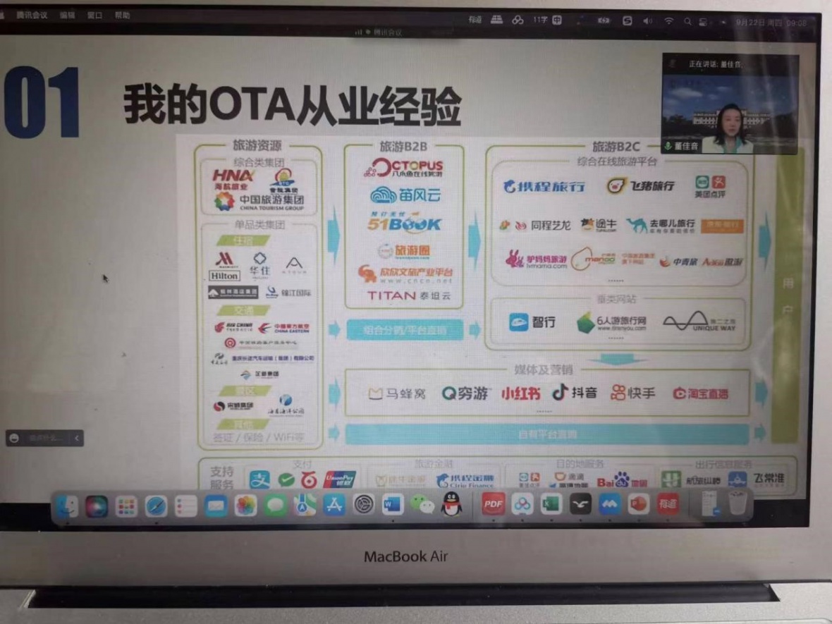 本次讲座中,董佳音老师以其自身的行业从业经验带领同学们深入了解OTA企业的工作场景,让同学们切身感受到大型旅游企业的数字化智慧化发展历程,以及在当下旅游行业进入转型升级的关键时期,智慧旅游专业学子未来的就业形势和前景。摆脱传统对于旅游行业的认知局限,建立在“数字经济”“幸福产业”“国民必须”等新形势、新驱动下的智慧旅游新观念。