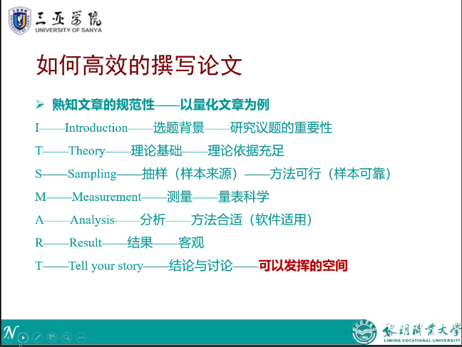 紧接着,苏教授给老师讲解了如何高效的撰写论文。探讨结束后,老师们提出了自己的疑惑与问题,苏教授耐心的解答了老师们的问题,老师们纷纷表示收获颇多,最后柴勇院长代表全体老师致感谢辞,感谢苏教授的精彩讲解和耐心答疑,苏教授也表示,希望今后有机会再次来到三亚学院,和各位老师一起进行学术探讨。