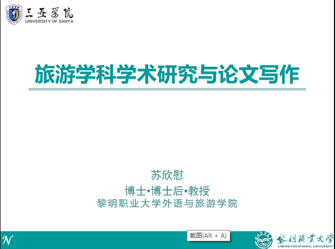 为了让我院老师对旅游学科学术有更深层次的研究,我院于12月7日下午3时,由黎明职业大学的苏欣慰教授在线上和我院老师们开展了一堂有关旅游学科学术研究和和论文写作的探讨,我院柴勇院长以及我院老师积极参加本次会议。