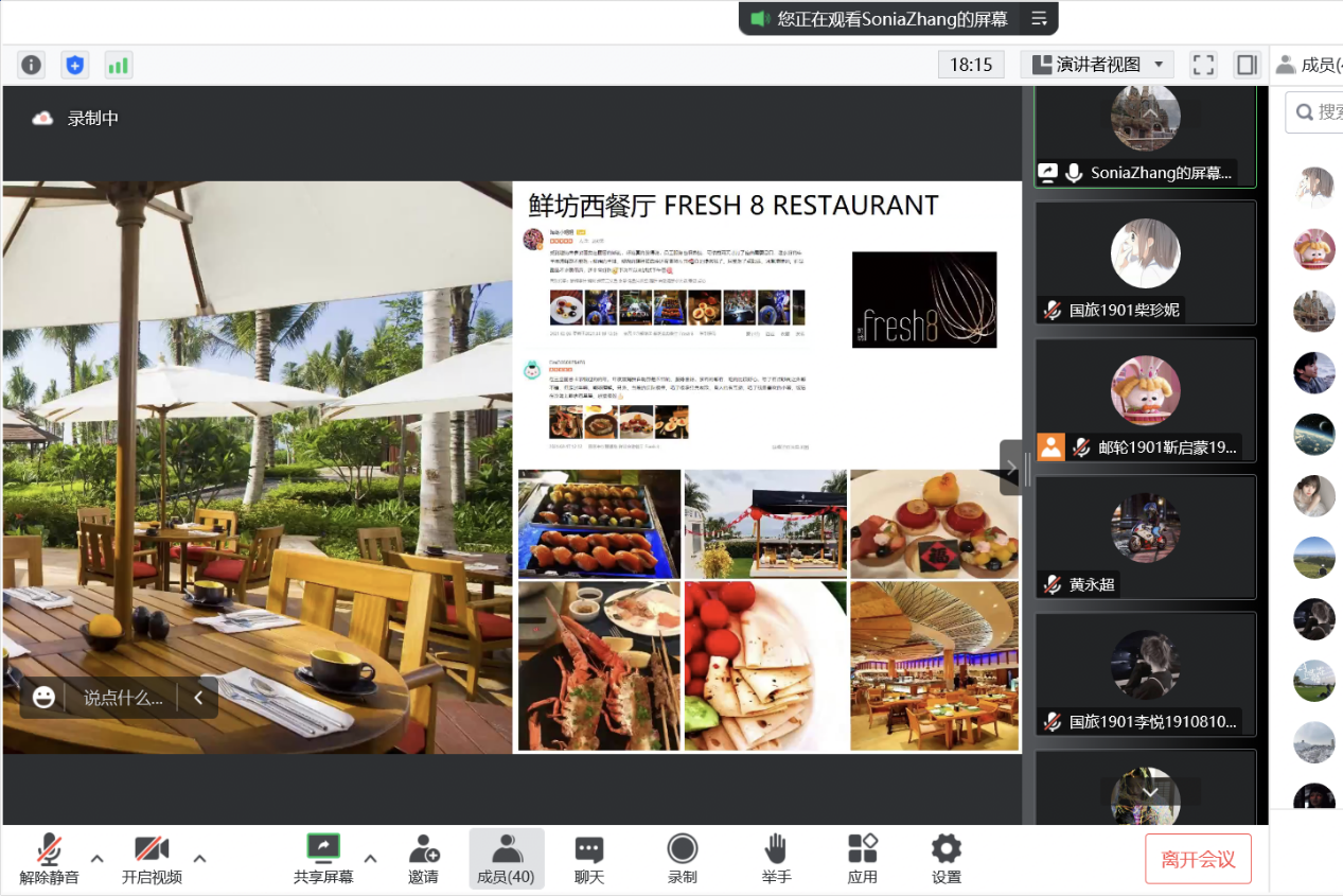 讲座伊始,酒店招聘负责人Sonia Zhang以一个动漫视频为此次宣讲的开端,充分展示丽思卡尔顿的“我们以绅士淑女的态度,为绅士淑女们忠诚服务”的座右铭。接着,Sonia Zhang介绍了丽思卡尔顿的基本情况、招聘岗位、待遇情况,并着重介绍丽思卡尔顿的高潜质实习生项目:通过推荐、评选、培训三步骤培养高质量实习生,为集团提供储备人才。最后,Sonia Zhang邀请学生进入群聊,为学生答疑解惑并表示期待与学生的12月11日的线下招聘会。