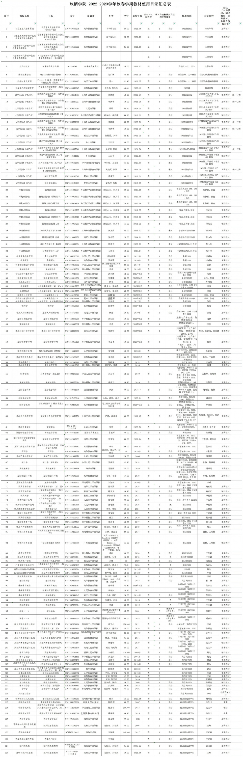 现公布2022-2023学年春季学期教材(含共同基础课和专业课)使用目录情况给全体学生,以供查阅。希望大家可以自制购买相应教材(由学校统一购买的已在教材目录中标注)提前预习新学期课程知识,做到学有可查、学有可鉴。