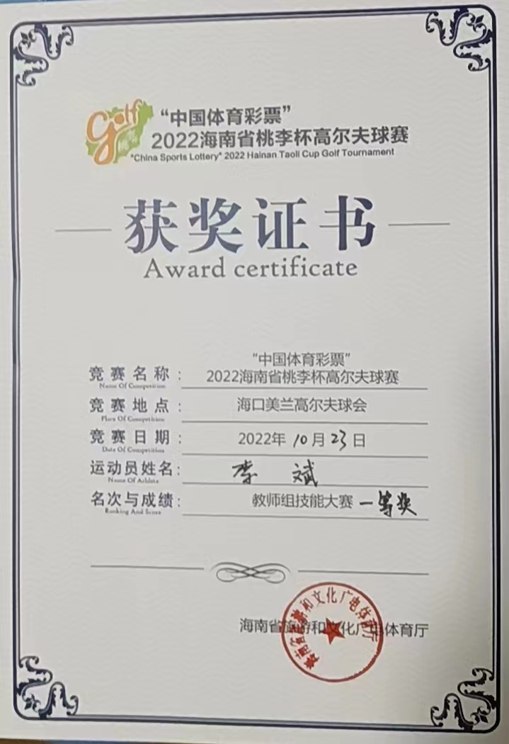 三亚学院高尔夫专业是全国高尔夫专业设立最早的本科院校之一,已经培养出一千余名毕业生。本专业秉承学校办学理念,以学生为本,以能力为导向,2018级至2021级四届学生共计195人,取得职业技能证书300多人次,人均近2次。学生取得国家级大创项目十多项,国家、省市各类奖项十多项。取得2015年海南省高校高尔夫联谊赛男、女个人赛第一名,团体赛第三名;2021年全国大学生高尔夫队际联赛第六名、海南省高尔夫青少年巡回赛第六名。2022年,仅30多名同学的18级高尔夫班考研上岸人数3人,占比将近十分之一。毕业生有硕博校友,国际裁判、国际教练,创业达人等。