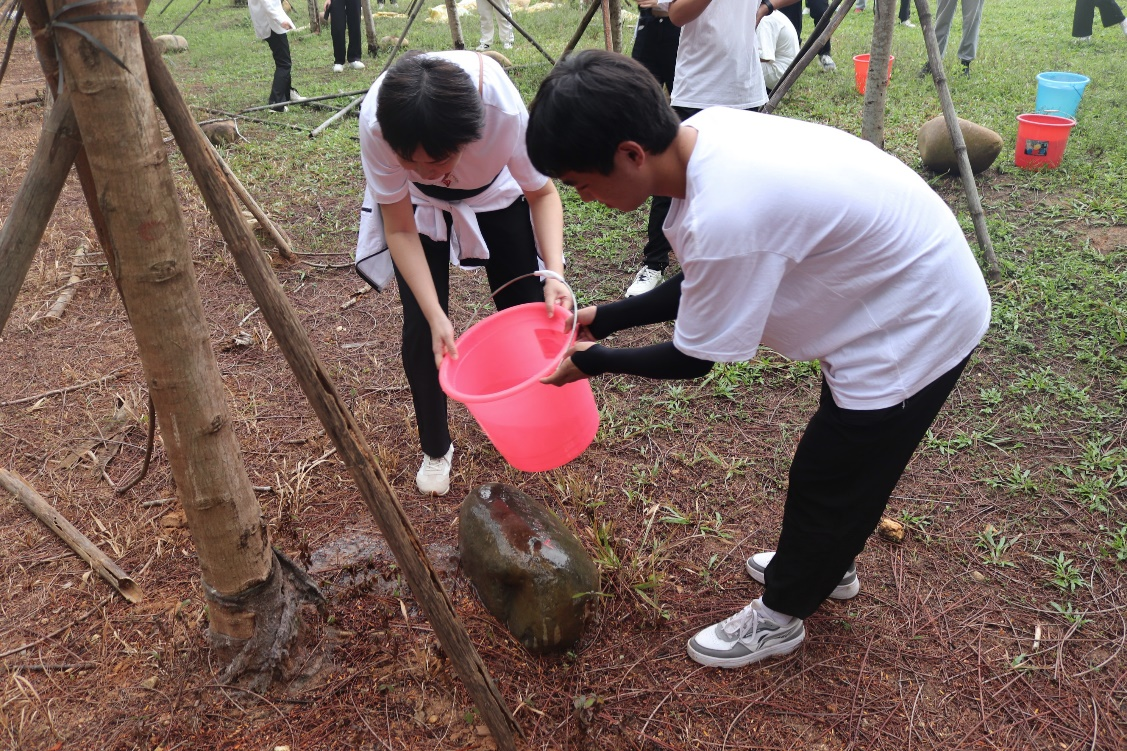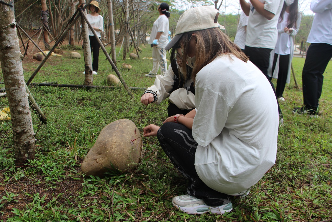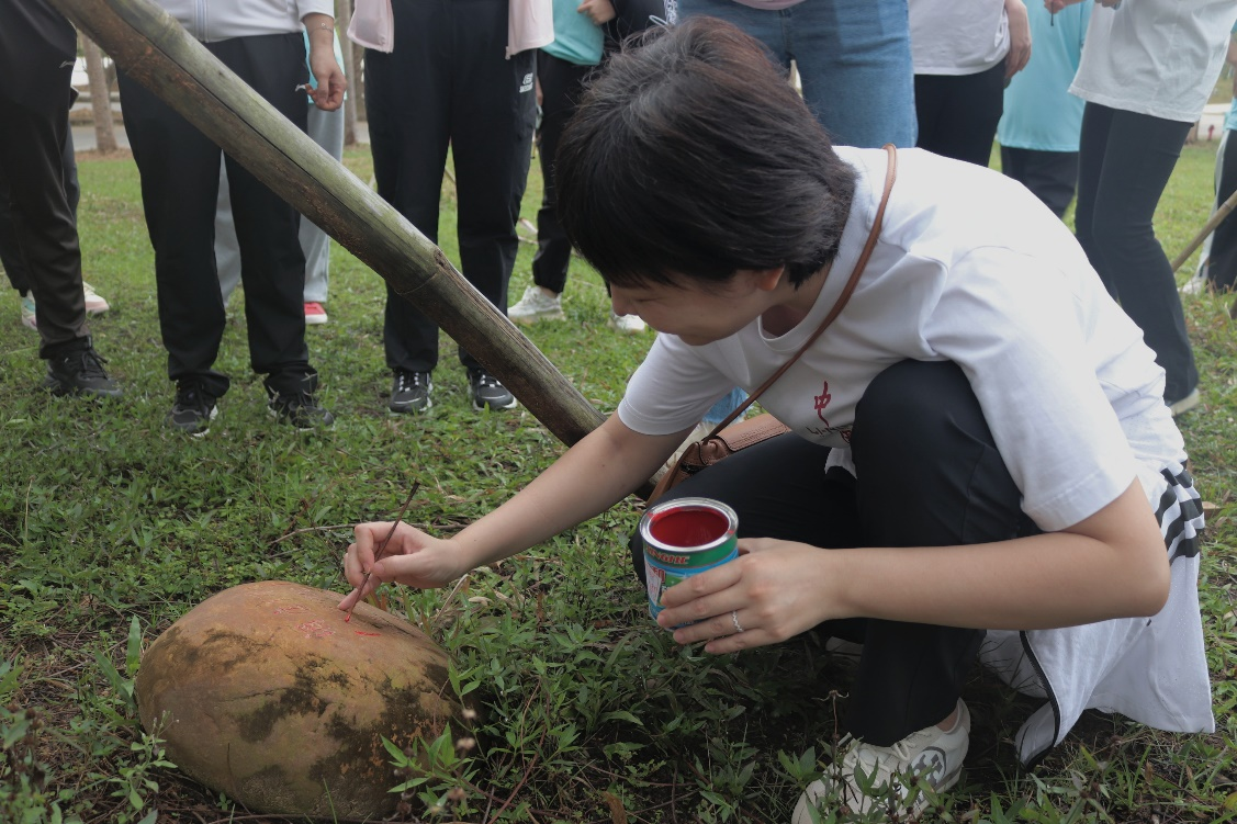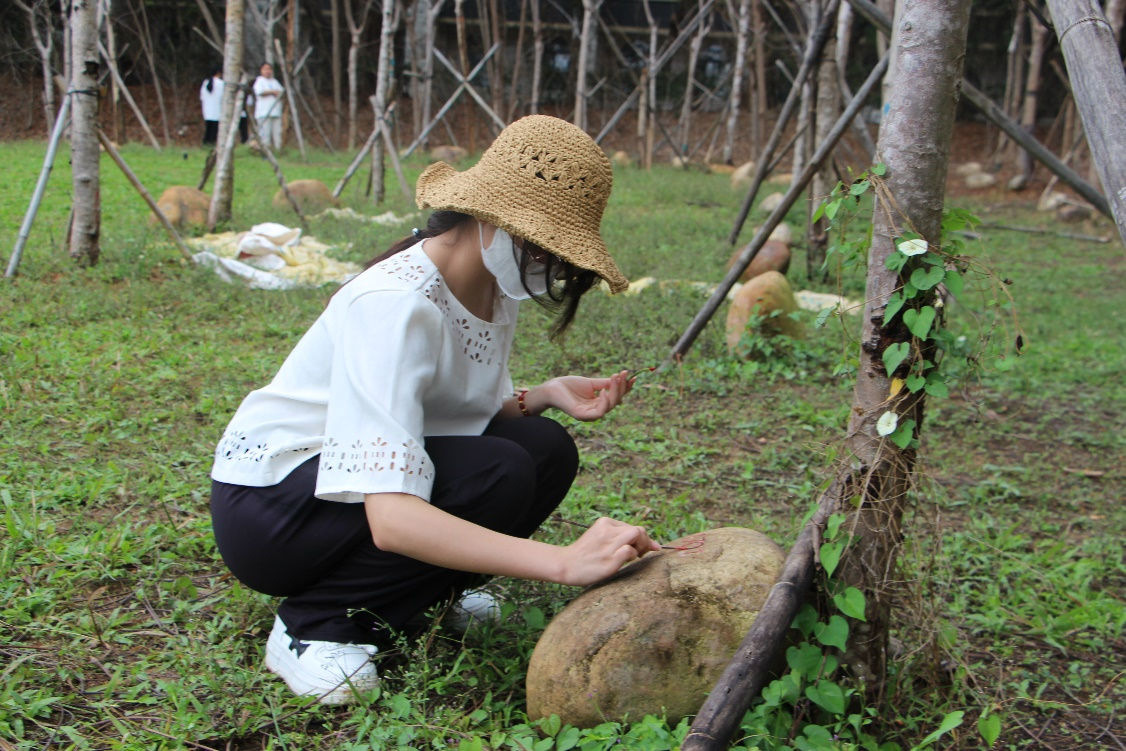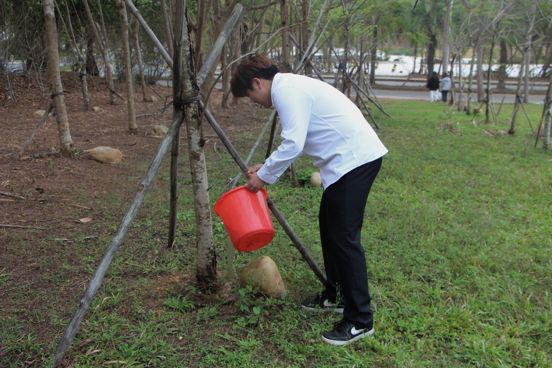凤凰林是三亚学院的毕业林,每届毕业班级在毕业之际在这里留下与母校相处的痕迹。在习习微风下,一块块刻着“毕业留念”的石头,依托着旅酒学子与学校学院不可分割的感情。吴吟秋老师带领我院学生代表们再次描写纪念石上各毕业班留下的印记,随后细心地为每一棵树浇水。