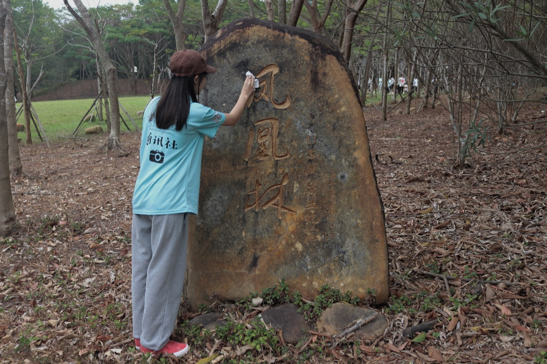 我院学生擦拭凤凰林的石碑