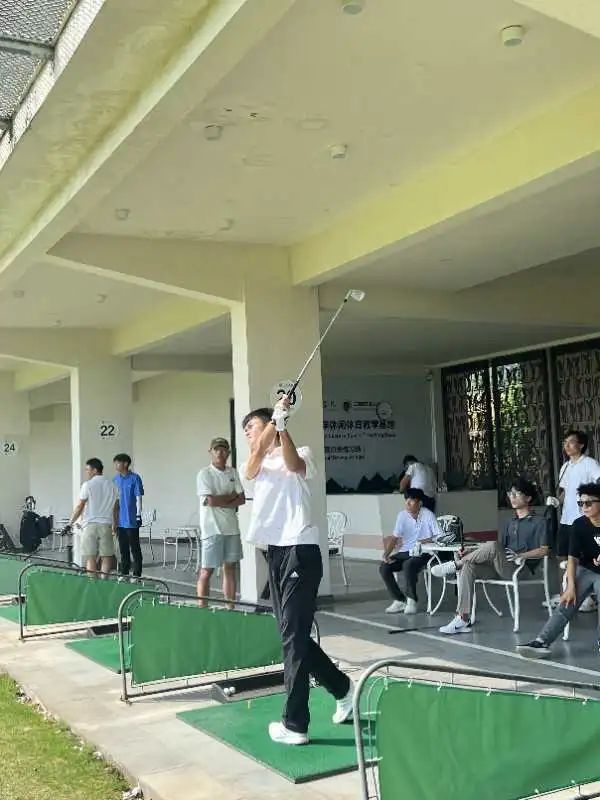 骄阳似火,绿草茵茵,参加此次考核的学生们正在训练场上如火如荼地进行热身运动。热身、挥杆和紧张的气氛在练习场中弥漫。