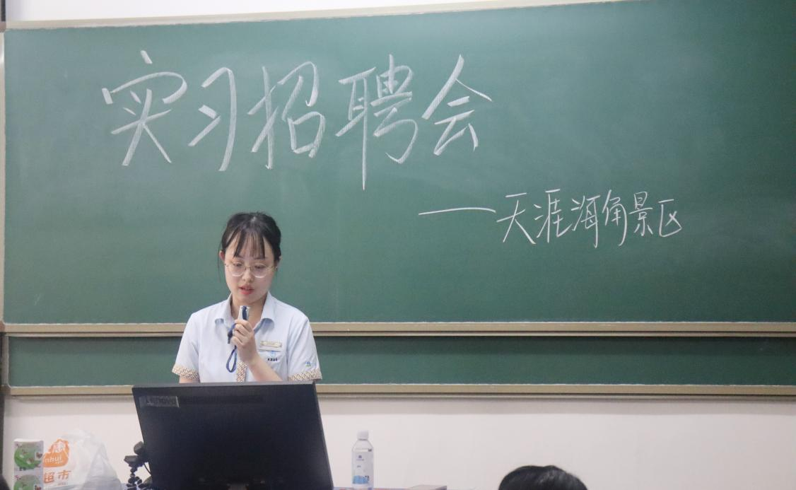 为了让我院学生能更好的进行专业实习,旅酒学院于4月17日在书知楼举行了21级旅游管理专业招聘会。天涯海角景区,三亚康年酒店,三亚艾迪逊酒店,万宁石梅湾艾美酒店来到了此次招聘会,我院21级旅游管理专业学生积极参与本次招聘会。