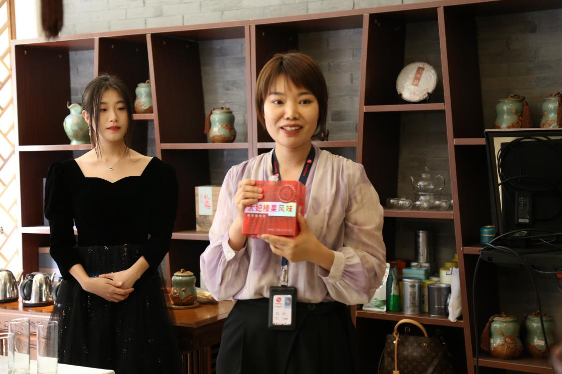 获得最佳创意奖茶艺社团的是付俊芳和徐源与李微经历合影留念