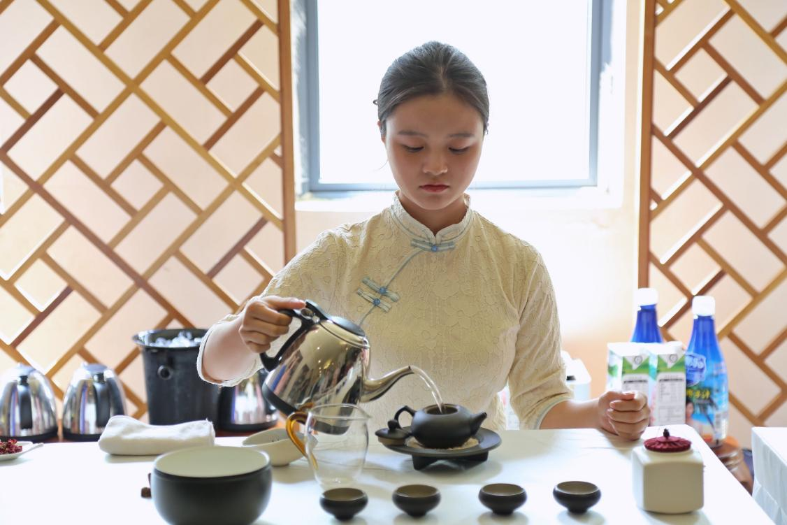 数千年来以,茶成为中华民族的国饮,茶因人而添香,人因茶而增色,而咖啡是作为时代的产物,当咖啡与茶的碰撞时,减淡了咖啡的苦味,其中还有一些茶的香气留于齿间,在第一分会场的茶艺社团为大家带来茶艺表演,并请老师品尝,随后由老师做出点评。