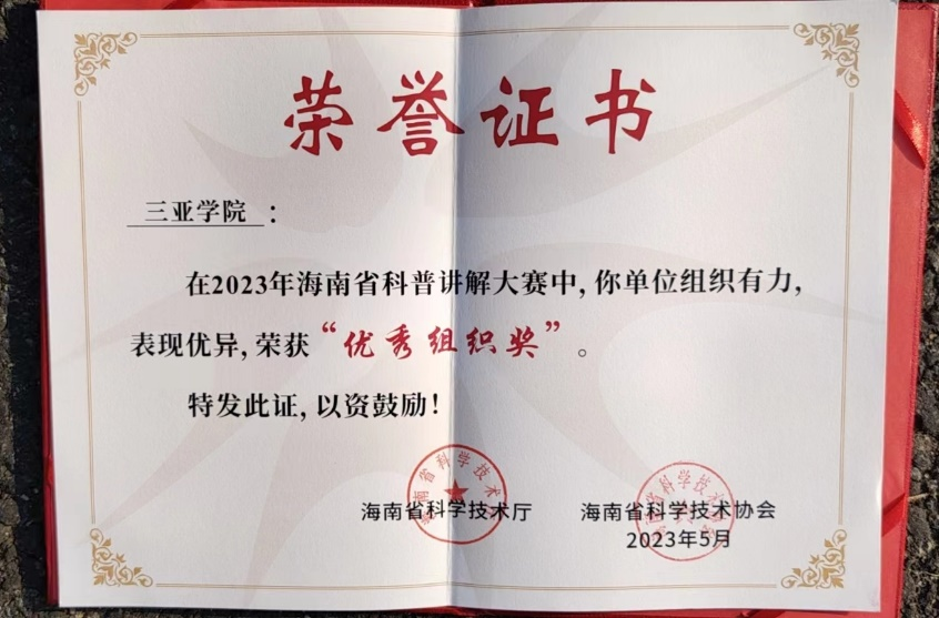 2023年5月5-6号,由海南省科学技术厅、海南省科学技术协会主办,中国热带农业科学院香料饮料研究所承办的2023年海南省科普讲解大赛初赛在海口成功举办。旅酒学院的俞浩然、黄洁和付俊芳三位学生通过耿佳老师的指导,积极参加比赛,并在比赛中获得了不错的成绩。三位学生参赛科普演讲的题目分别是《神秘的蛇绿岩》、《岩浆的宿命》和《水带来了“生机勃勃”的地球》。这次比赛以形象生动的方式为受众讲解科学热点问题,旅酒学院的学生激情演讲,激发了现场观众的科学兴趣,让科普讲解“实力圈粉”,也让科学走进更多人心里。同时,也为三亚学院获得了“优秀组织奖”。希望这次比赛能够激励我院更多的学生和老师加入科普知识普及和传递的队伍中来。