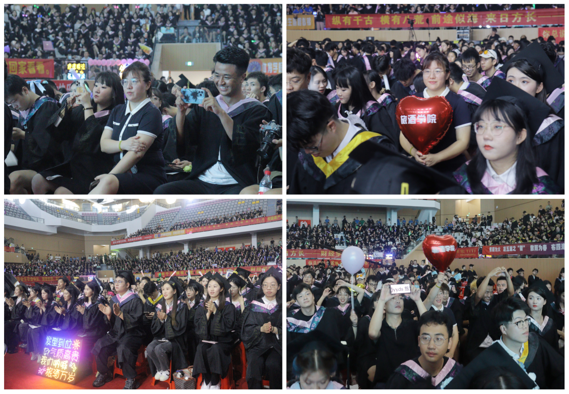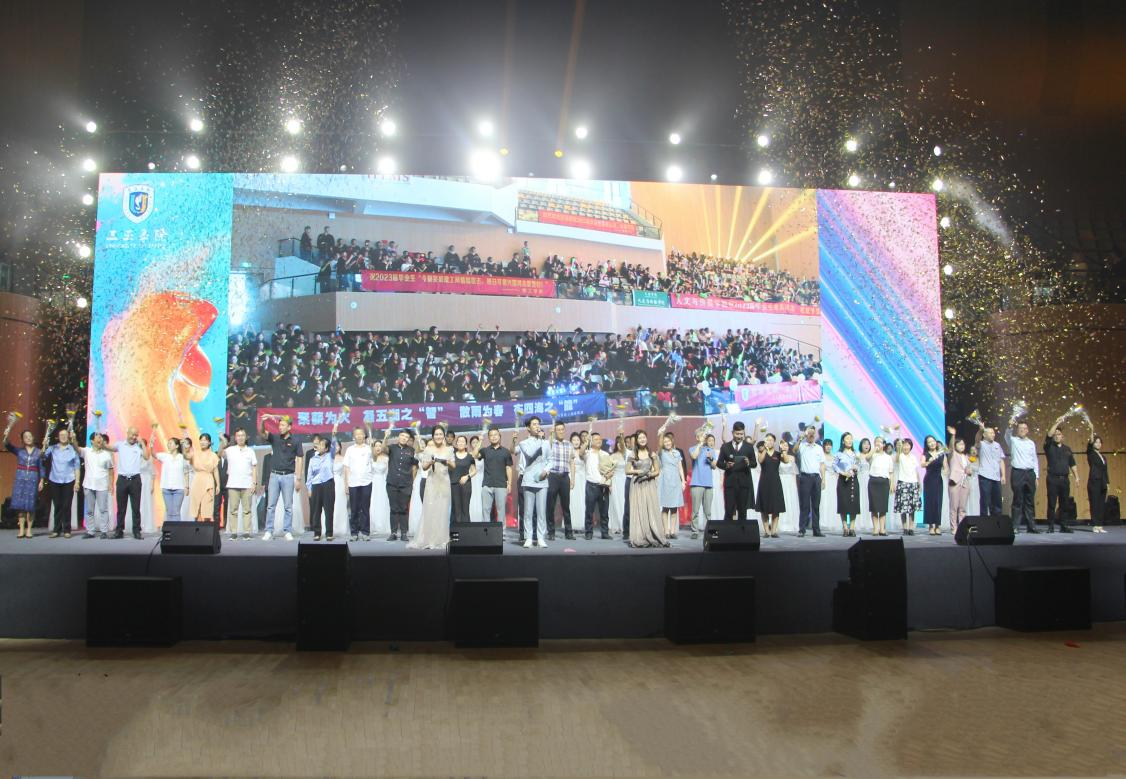 此次毕业典礼在合唱歌曲表演《感恩的心》和《成功是欢乐的海洋》中圆满结束,熟悉的音乐又一次被唱响,各学院的老师代表们伴随着音乐走向舞台,一起向毕业生们挥手告别,希望毕业生们顺利开启新的人生旅程。