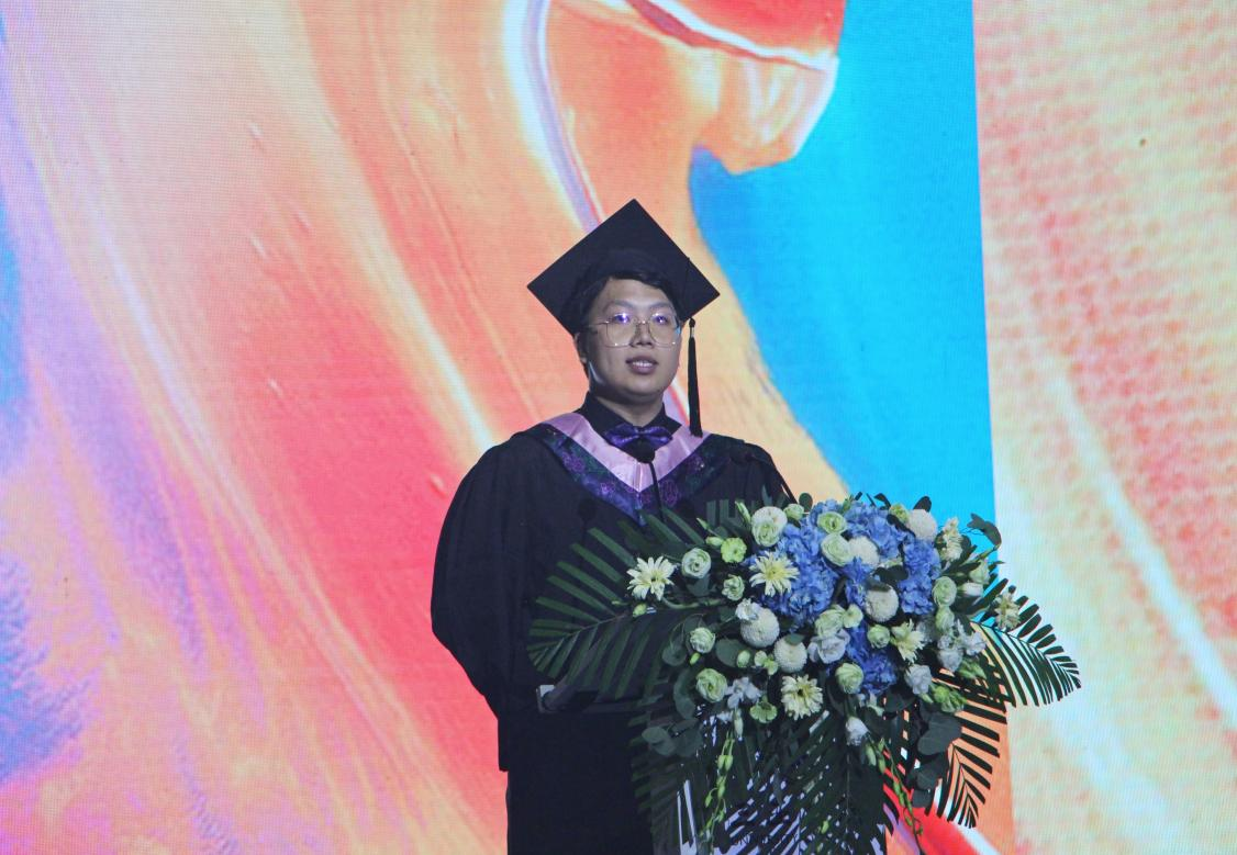 来自健康与产业管理学院的毕业生郑舒涵代表2023届全体毕业生发言,四年时光历历在目,是对同窗的不舍情谊,是对教师的感恩情谊,更是对母校的感谢情谊。他表示,作为新时代大学生要做拥有智慧并富有激情的人,做胸怀大志并脚踏实地的人,做负有责任并敢于勇挑重担的人,不畏艰险、追求卓越,要坚定理想信念,投身基层实践,为祖国发展奉献自己的力量。