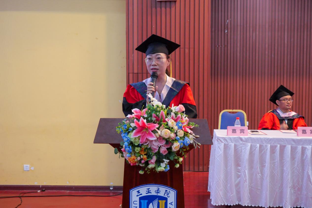 临近仪式末尾,三亚学院校领导刘晓鹰教授进行讲话,希望同学们带着学校的祝福与期望能够勇敢面对未来的挑战,在未来不断成长,不断追求卓越、超越自我。