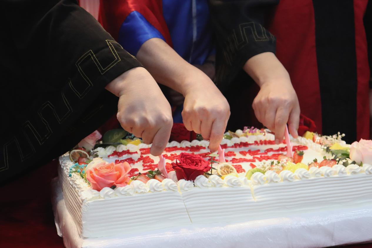 学院还特地为你们准备了蛋糕,为你们每一位毕业生再过一次生日。希望你们以后的生活能够圆圆满满、甜甜蜜蜜!
