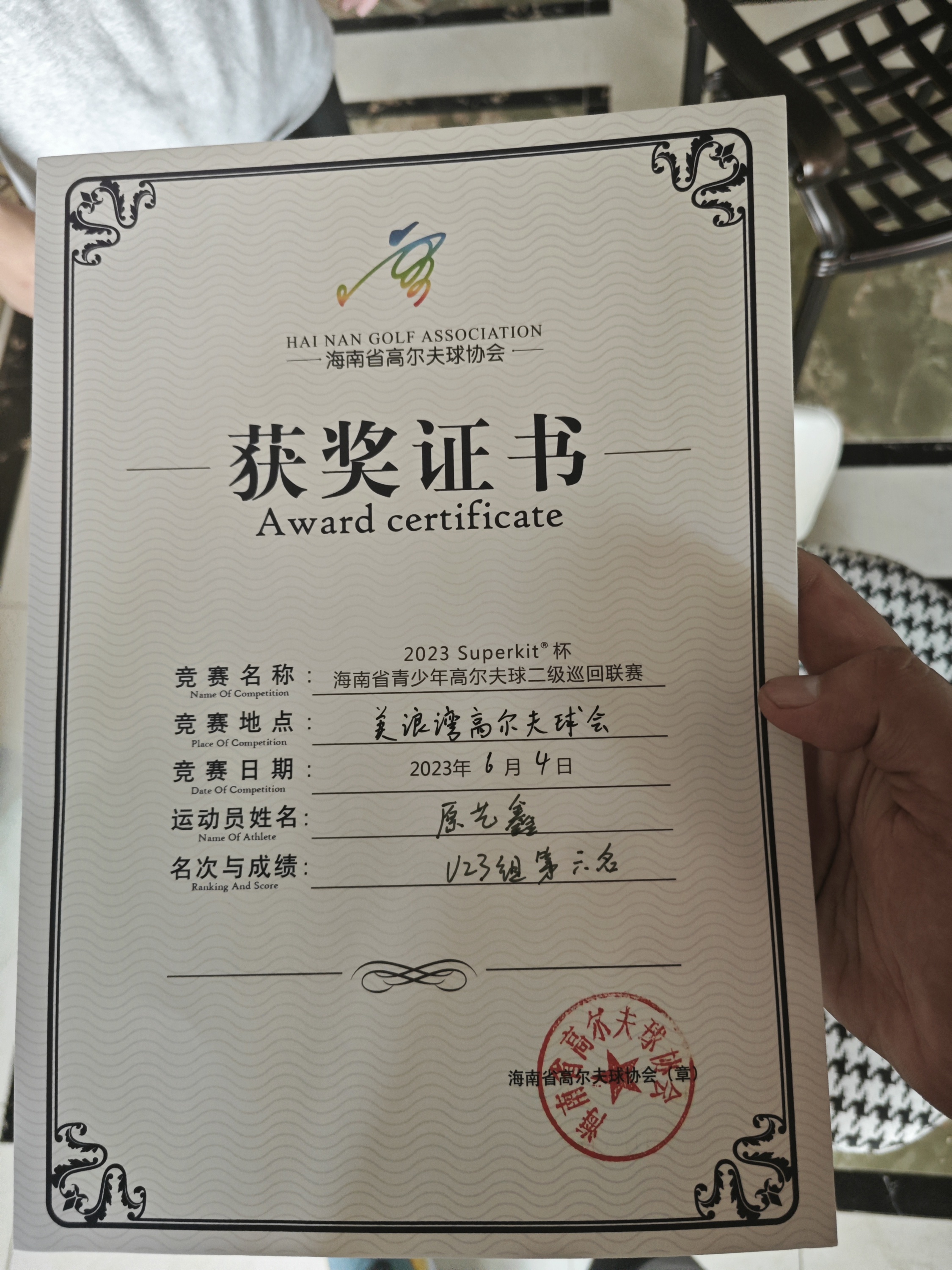 我院高尔夫专业为了加强与全省高尔夫行业的联系、增加专业学生的技术经验,参加省级比赛方案为22级以增加比赛见识、21级以积累比赛经验、20级以争取赛出成绩为目的进行参赛,我院高尔夫2001级原艺鑫取得了第六名的成绩。