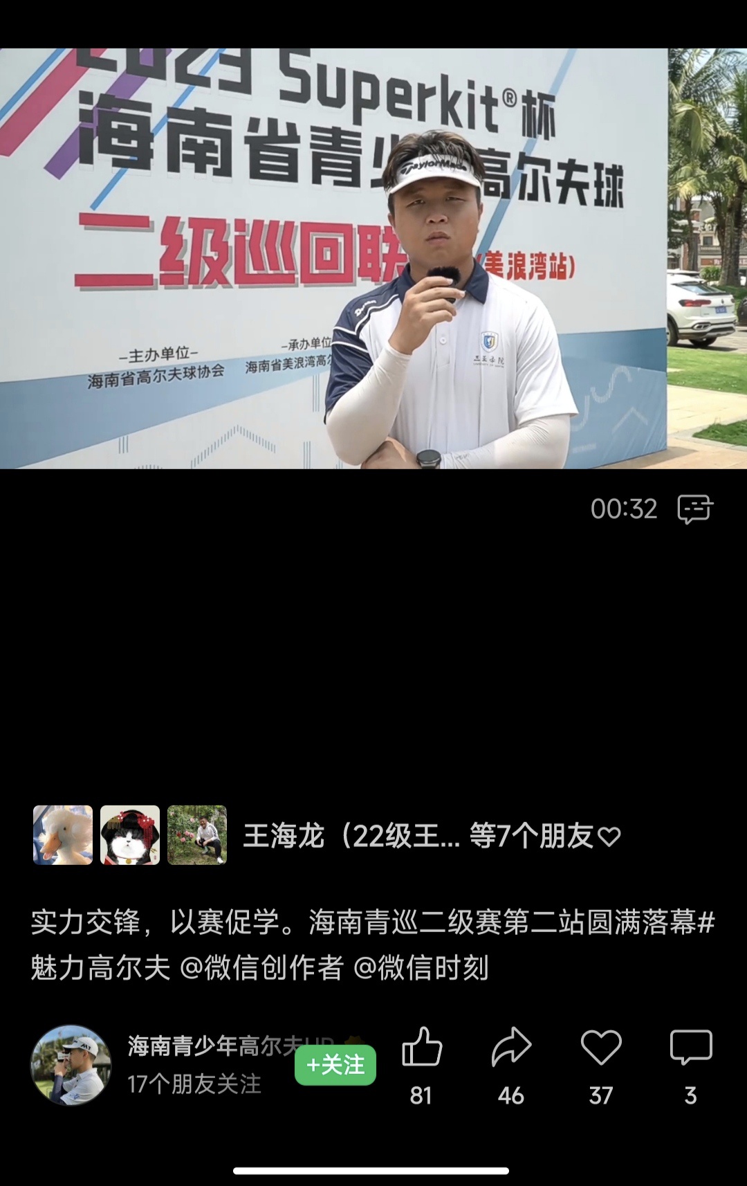 2023年6月4日,趁荔枝正红,球场飘香,由海南省高尔夫协会主办的2023海南省青巡二级联赛第二站如约挥杆美浪湾,再燃这个夏天的高球之火。本次赛事迎来了海南高校的实力对决,球员们奋力拼搏,展现学院风采。