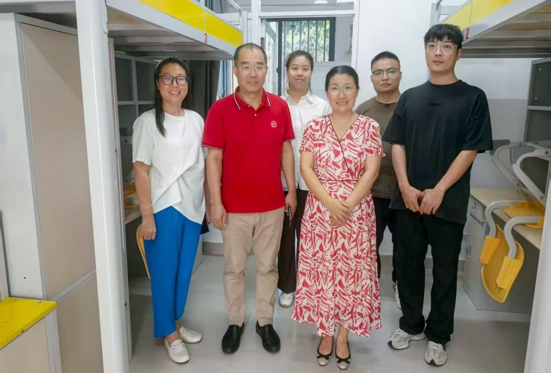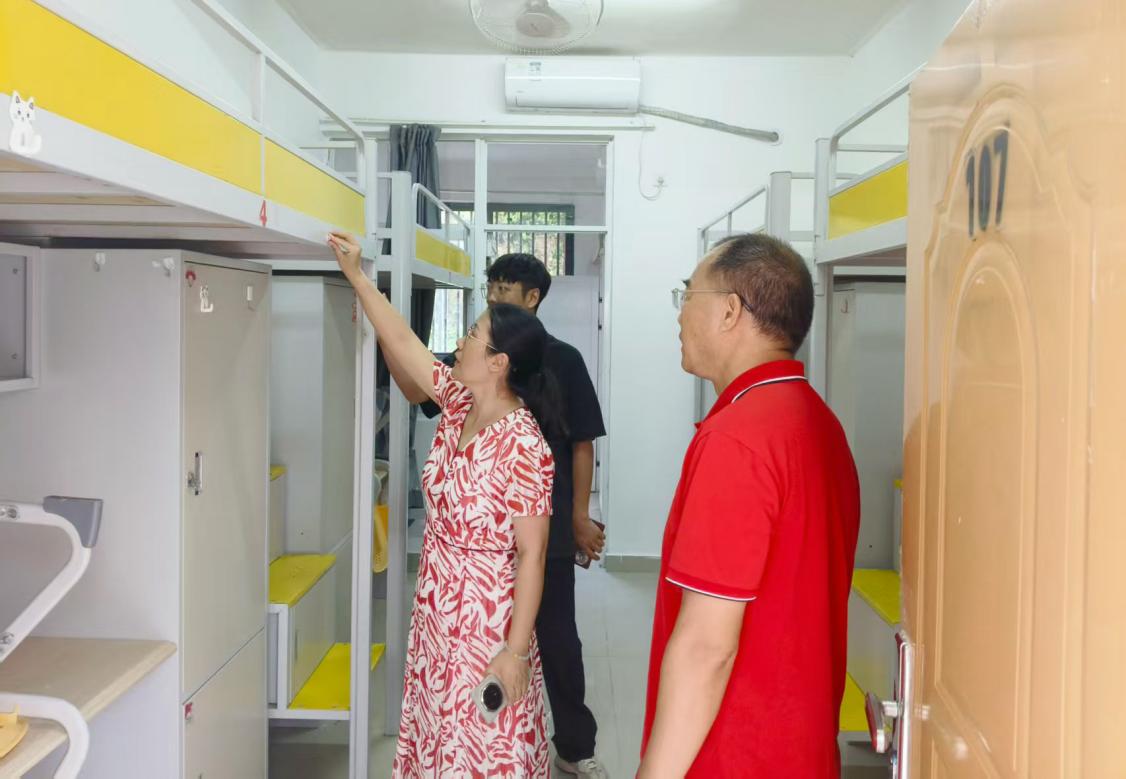 当天下午学工团队对新生宿舍进行了全面细致的检查,从卫生间的清洁程度到阳台的安全防护,从床铺的稳固性到书桌的实用性,领导们认真查看每一个细节,体现出对新生无微不至的关怀。“水龙头出水是否顺畅?” “卫生间排水是否通畅?” “门窗锁具是否完好?”领导、老师们一边检查,一边联系相关部门立即整改发现的问题,确保新生入学时所有设施都能正常使用。