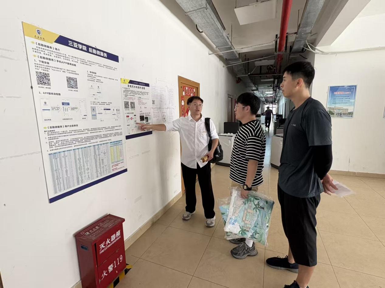 书艺馆前的迎新区域活力满满,“旅业管理学院欢迎您”的主题背景板前,新生们纷纷与学院领导、老师合影留念。镜头里,一张张年轻的脸庞绽放着灿烂笑容,将初入校园的期待与喜悦定格成永恒。为了帮新生快速熟悉校园,24级MTA学长钟可鑫、王崧澎主动化身“校园引路人”:他们接过新生手中的行李箱,一路指引宿舍方向,还细致分享“食堂最优动线”、“图书馆预约技巧”、“校园巴士时刻表”等实用经验,用亲身经历帮学弟学妹们卸下陌生感,快速融入三亚学院的大家庭。