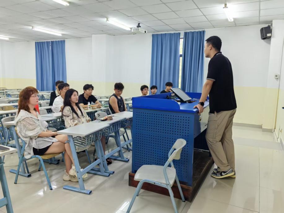在专业资源解读环节,陶鹤鼎与欧云梅两位老师结合教学经验与行业资源,从 “课程 — 实践 — 竞赛 — 科研” 四大维度,为新生系统梳理专业发展路径。在竞赛与科研方面,两位老师共同梳理了会展领域的优质资源:学科竞赛涵盖 “全国高校商业精英挑战赛会展专业竞赛”“中国会展教育成果展示活动”“海南省大学生会展策划大赛” 等,从校级到国家级,分层级为学生提供展示与竞技平台。