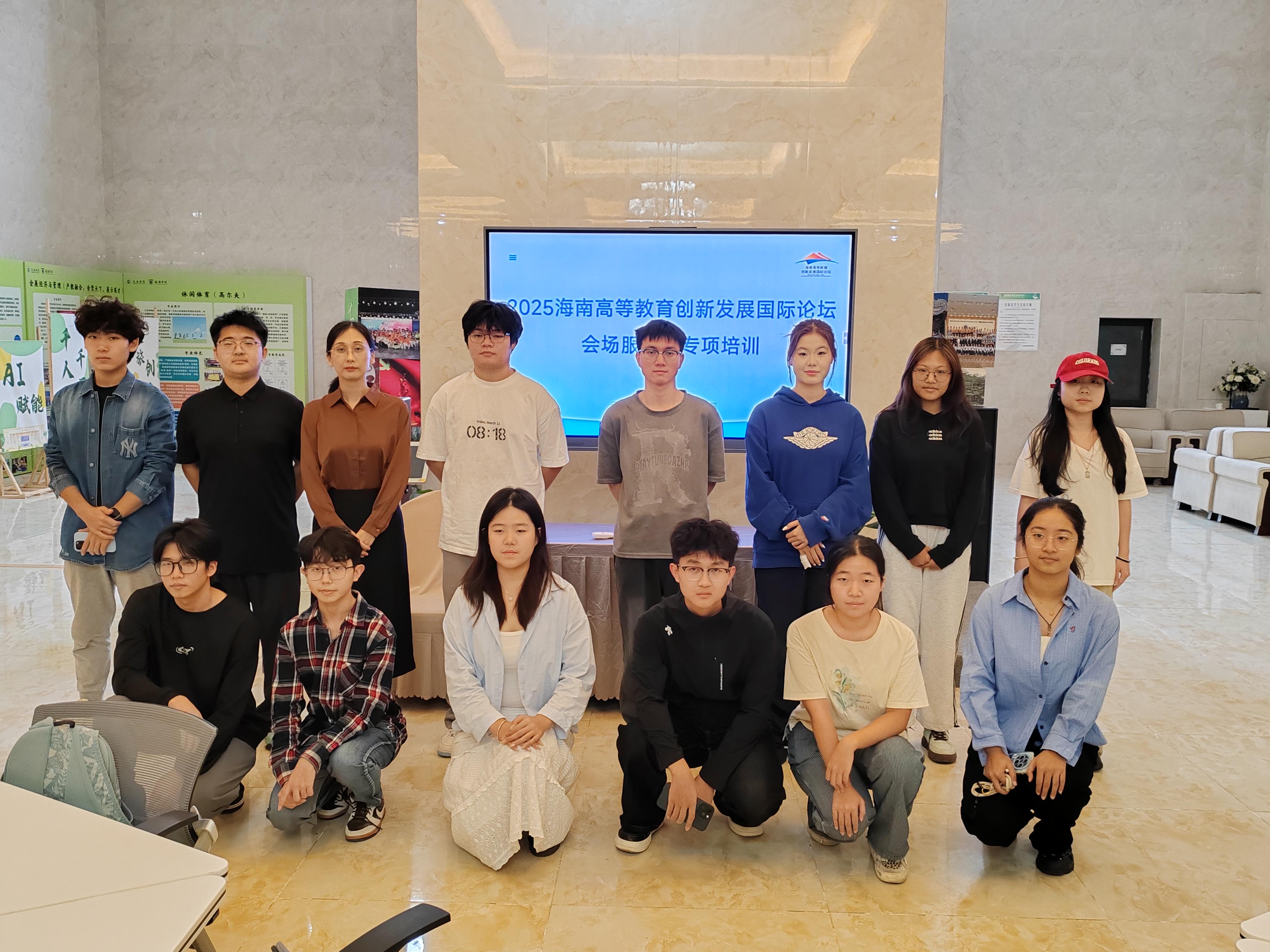 海南高等教育创新发展国际论坛由吉利人才发展集团发起主办,多方联合承办并获各级政府及行业协会支持,自2023年首届论坛至今已经成功举办两届,获得政府、社会、高校和企业的一致好评。2025年海南高等教育创新发展国际论坛将于11月28日—30日在我校书艺馆举办,本届论坛以“聚力共生,开创教育无限可能”为主题,汇聚政产学研各界代表,共同探讨AI技术驱动下的教育生态重构与创新发展路径。为切实提升志愿者专业素养与服务能力,确保高等教育论坛高效有序开展,11月20日,海南高等教育创新发展国际论坛会场服务专项培训暨《会议运营与服务接待》课程项目制教学实践启动会在白鹭苑实训大厅顺利开展。