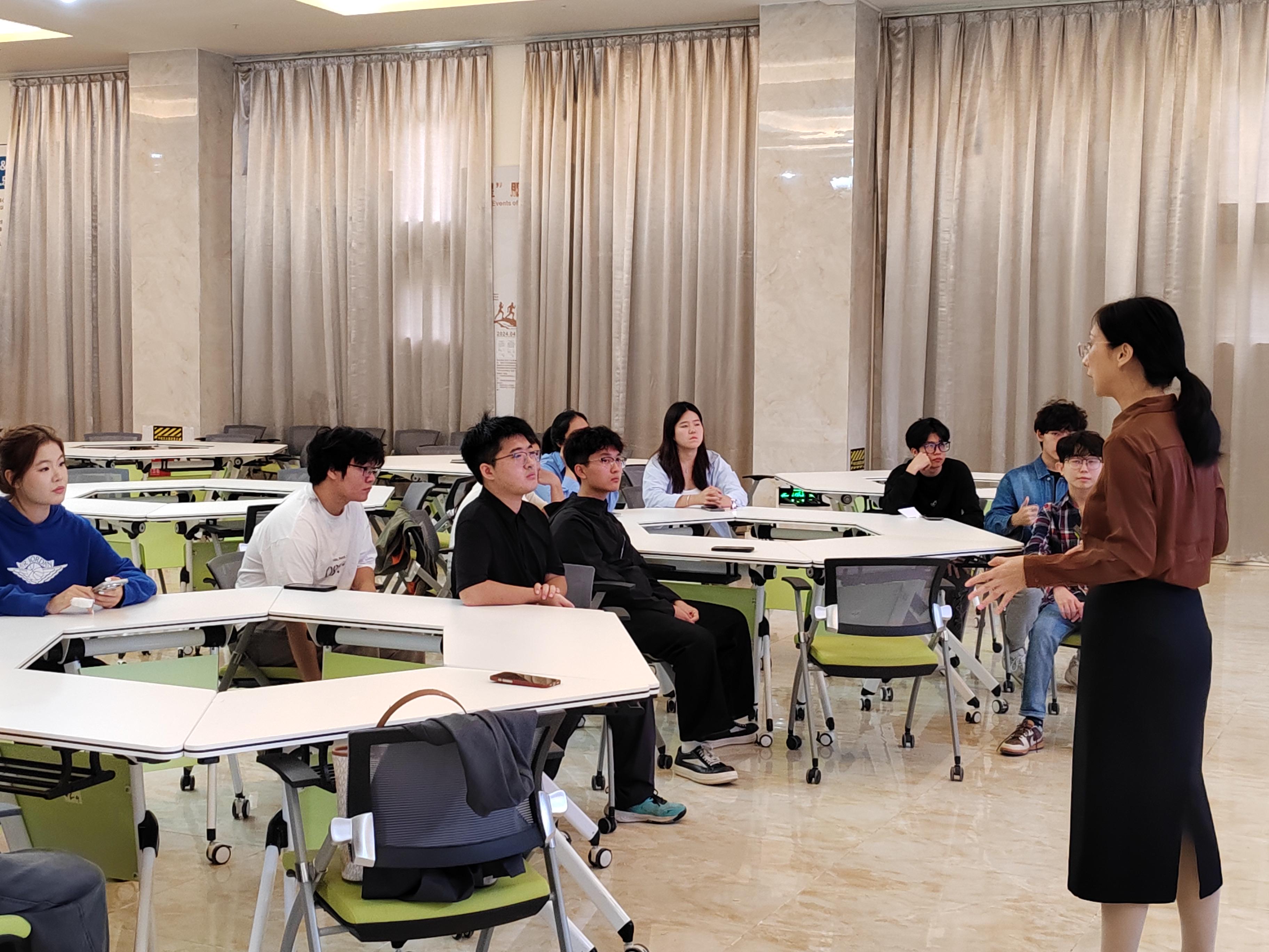 培训会开始前,由卢新新详细介绍了本届论坛的主题定位、议程安排及参会人员构成,让志愿者清晰知晓论坛核心价值与服务背景。卢老师还强调根据学校“真题真做”项目制教学要求,《会议运营与服务接待》课程依托本次论坛开展项目制实践教学活动,提出此次“真题真做”项目制教学的学习任务和具体要求,深化教学成果。学生通过项目制学习深入理解《会议运营与服务接待》课程的内涵,掌握大型会议的流程设计、会场布置、会议服务等技能,提升学生的综合能力。