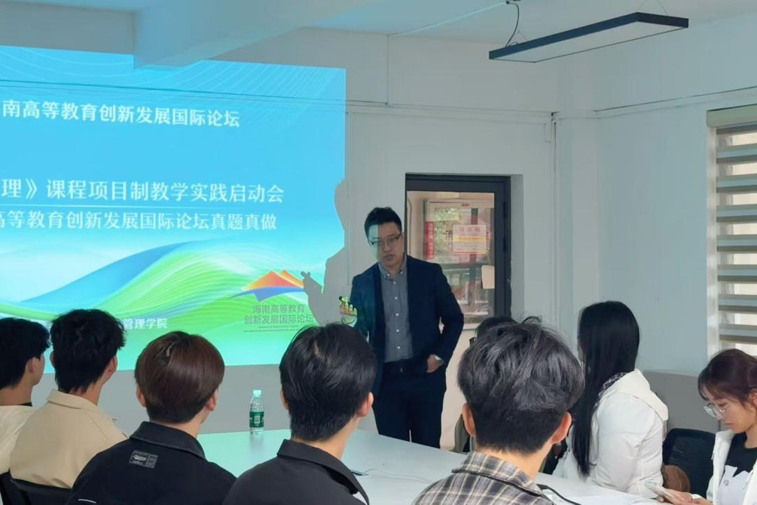 为迎接即将于11月28日至30日在我校书艺馆举办的2025海南高等教育创新发展国际论坛,切实提升志愿者专业素养与服务能力,11月19日下午,旅游与酒店管理学院在白鹭苑302会议室举办酒店接待会务组志愿者专项培训暨《酒店客户管理》课程项目制教学实践启动会。本次培训由旅酒学院酒店管理专业杨欣达老师担任主讲,围绕论坛"聚力共生,开创教育无限可能"的主题,以真题真做形式开展项目制教学实践。