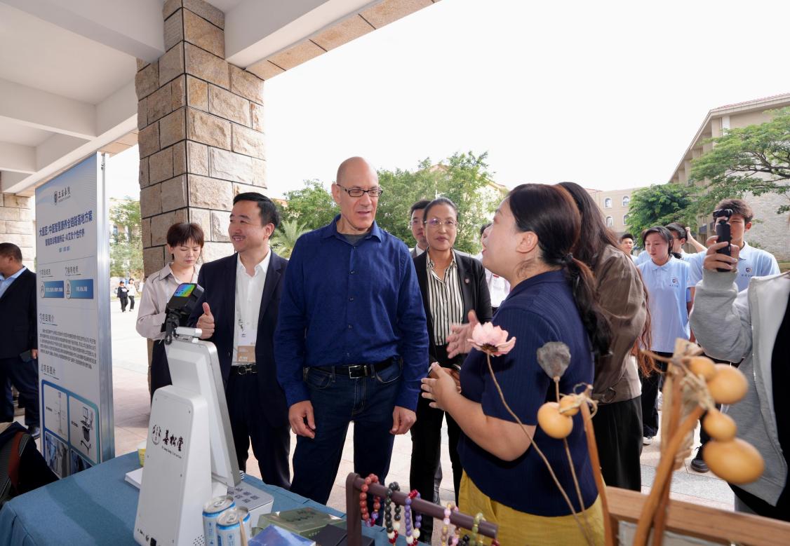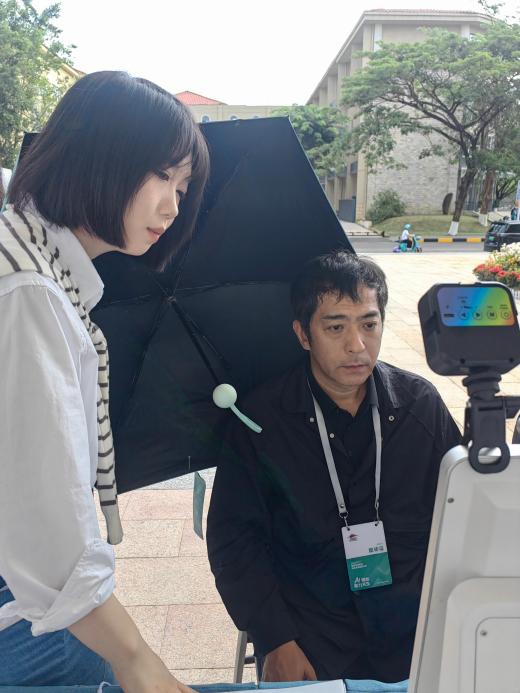 重要的展示时刻出现在11:20-11:40,上午论坛的第一次茶歇时段。Founders Space董事长史蒂夫·霍夫曼在校领导陪同下前来参观。团队成员以流利的英语全程讲解,生动演示了AI中医设备的操作流程,获得了这位硅谷重量级投资人的高度评价。