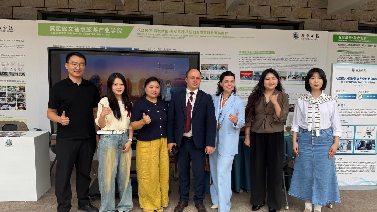 11月26日,接到论坛讲解任务后,余燕伶老师立即将这一高规格的国际接待转化为真实的教学任务。在《旅游英语》课堂上,她组织学生分组进行讲解词撰写和外宾提问预判,让学生们在“真题真做”中提前进入状态。同时专门组织获奖团队核心成员MTA学生荆芝霏、赵婴彤同学进行专业培训,从外宾接待礼仪、英语表达到康养旅游专业知识,进行了全方位的指导。“能够指导这样一个优秀的获奖团队在国际舞台上展示,我感到非常自豪,”余老师表示,“我们的任务是把项目的创新价值和商业潜力,精准地传达给来自全球的嘉宾。”