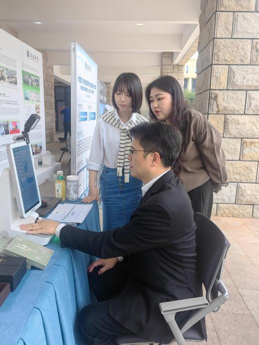 论坛期间许多国内外与会嘉宾慕名而来。团队成员分批接待,有条不紊地向各路嘉宾介绍项目的技术优势和商业模式,展现了旅酒学院MTA学生的专业素养。