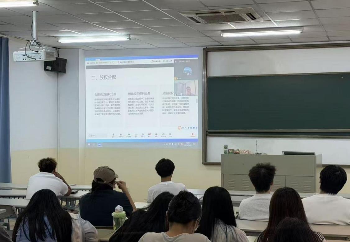 在法律风险防范方面,课程邀请了法律人兼投资人张和平律师,他结合丰富的实战经验,为学生讲解了创业过程中的法律风险点和防范措施。张律师强调:“法律合规是创业成功的基石。通过提前识别和防范法律风险,我们可以避免不必要的损失,为创业保驾护航。”