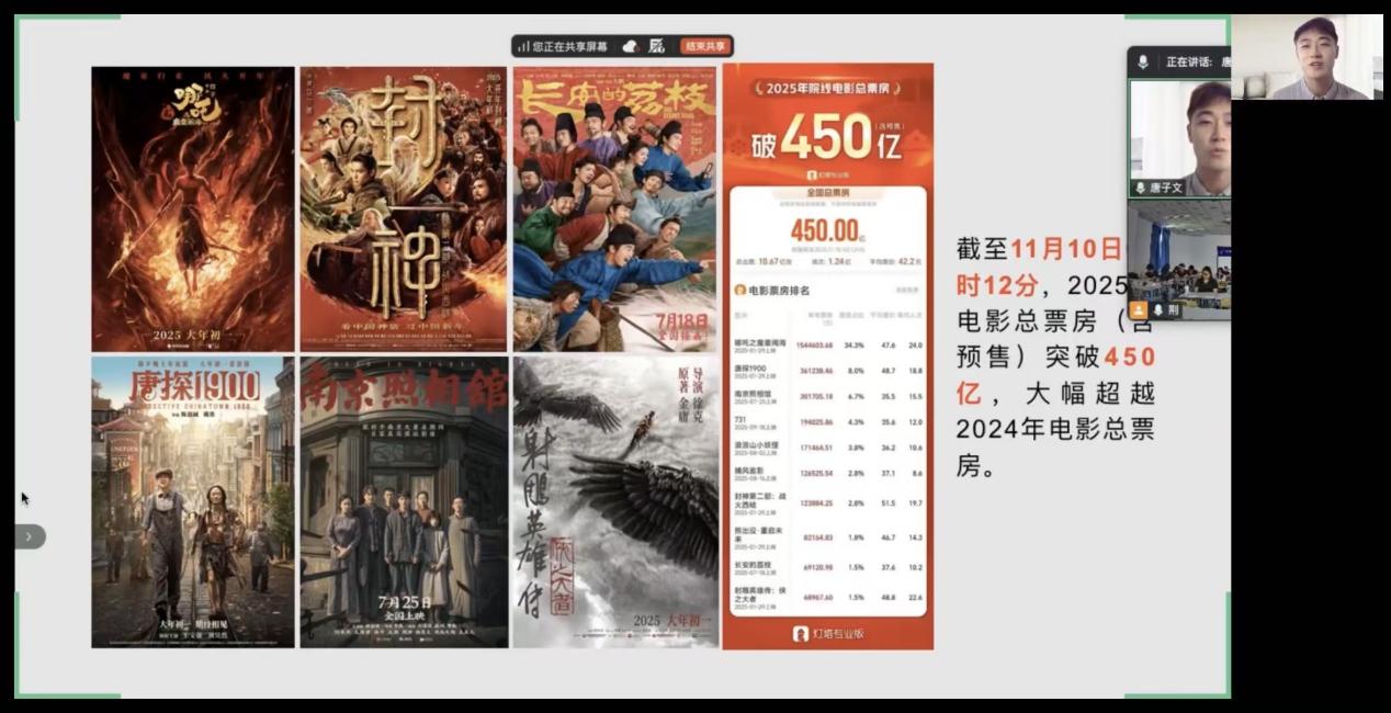 此外,课程还邀请到中国传媒大学戏剧影视学院戏剧与影视学博士研究生唐子文先生,他聚焦影视与文旅融合,深入剖析影视旅游定义、形态及市场规模。通过《命悬一线》等案例,详解影视对地域文化的传播作用及商业模式构建。通过解读影视产业未来,助力学生掌握影视文旅融合实战技巧,为旅游行业输送创新人才。