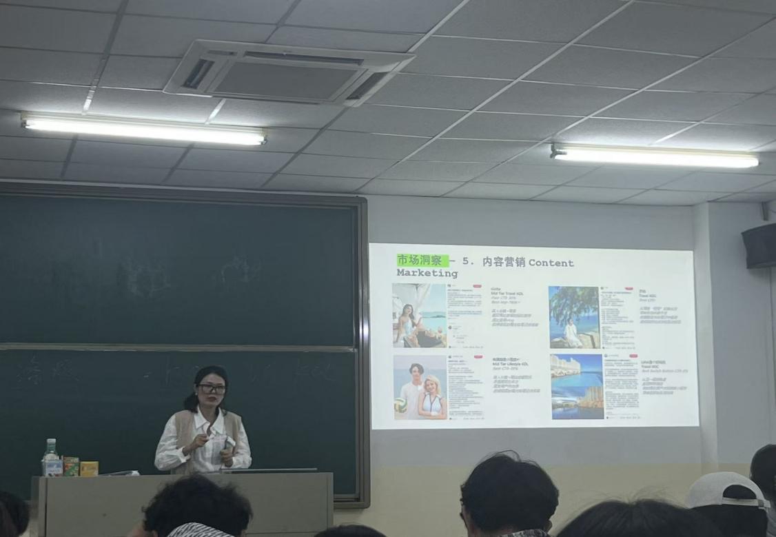 课程还邀请了万豪国际集团海南区域市场营销高级经理戴欢女士,她聚焦旅游营销新趋势,涵盖宠物、跨界、情绪营销等,结合案例解析市场策略,助力学生深入解析了旅游行业的运营模式和盈利逻辑。她指出:“在旅游行业,用户体验是核心。通过精细化运营和差异化服务,我们可以在激烈的市场竞争中脱颖而出。”